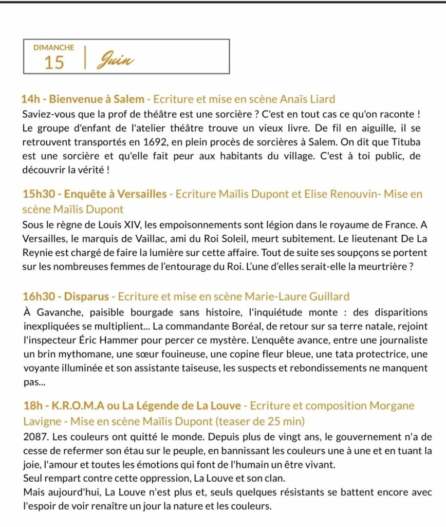 ci dessous le programme succinct et le programme détaillé des pièces présentées